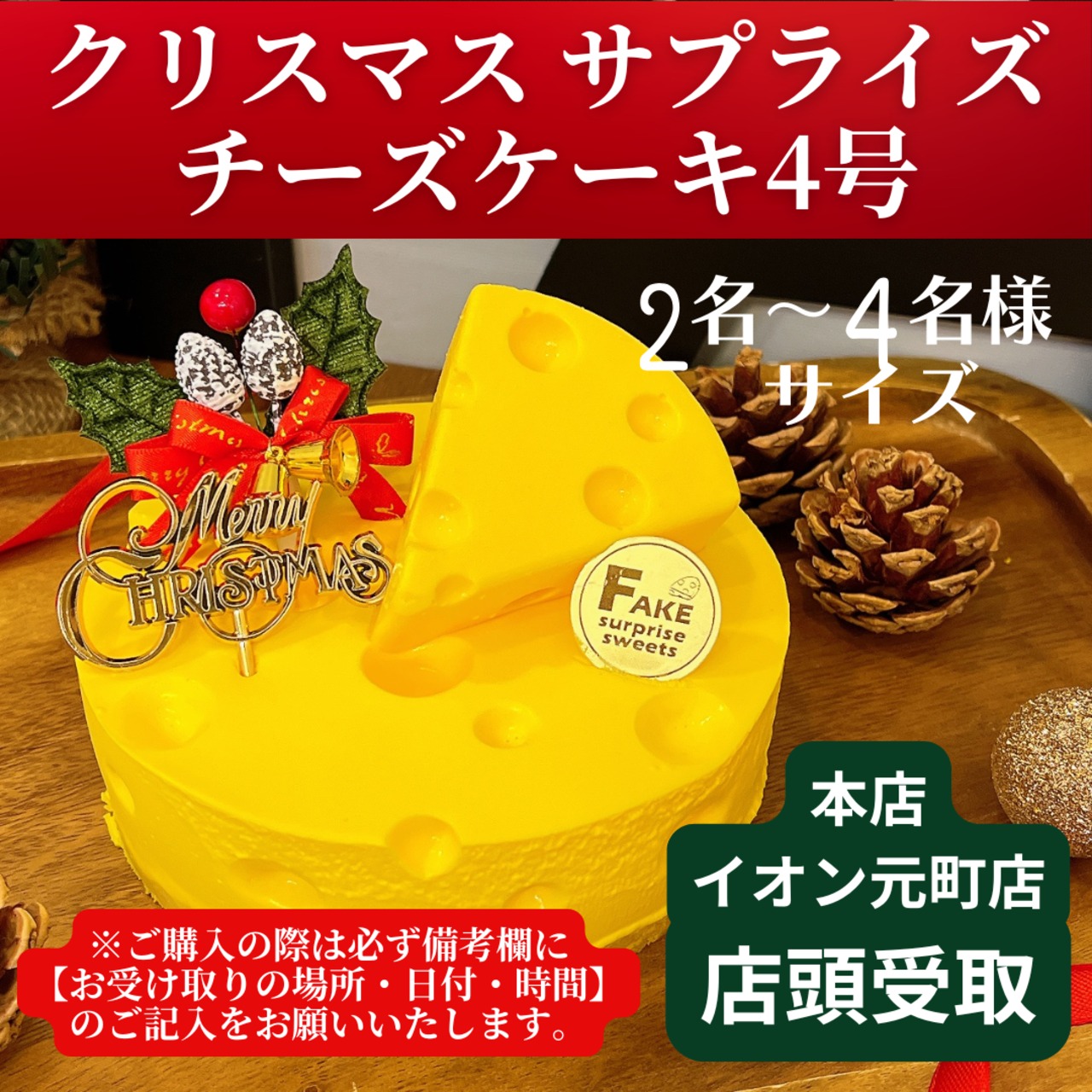 【元町店・本店 店頭受取】クリスマスサプライズチーズケーキ4号【事前決済用】