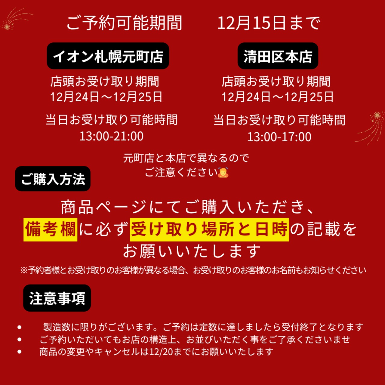 ・商品の変更・キャンセルは12/20までにお願いいたします